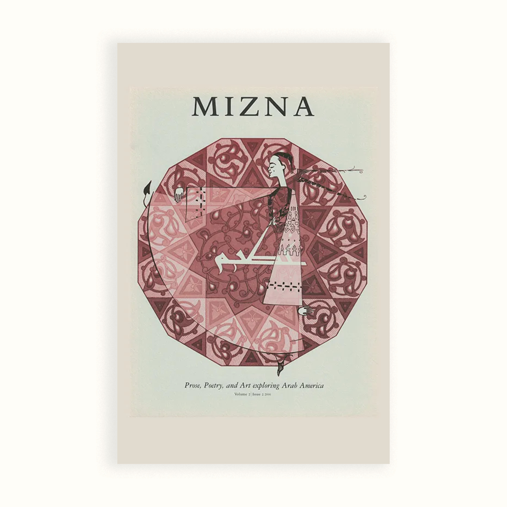 Second issue of Mizna published in 2000 with contributions from Sidi Benzahra, Esam Abdel Aal, Joanna Kadi, Issa Boullata, Kazim Ali, Ahimsa Timoteo Bodhrãn, Nahid Khan, Aida Hasan, Hassan Mekouar, Youssef Rakha, and Natalia Yatsukhina.