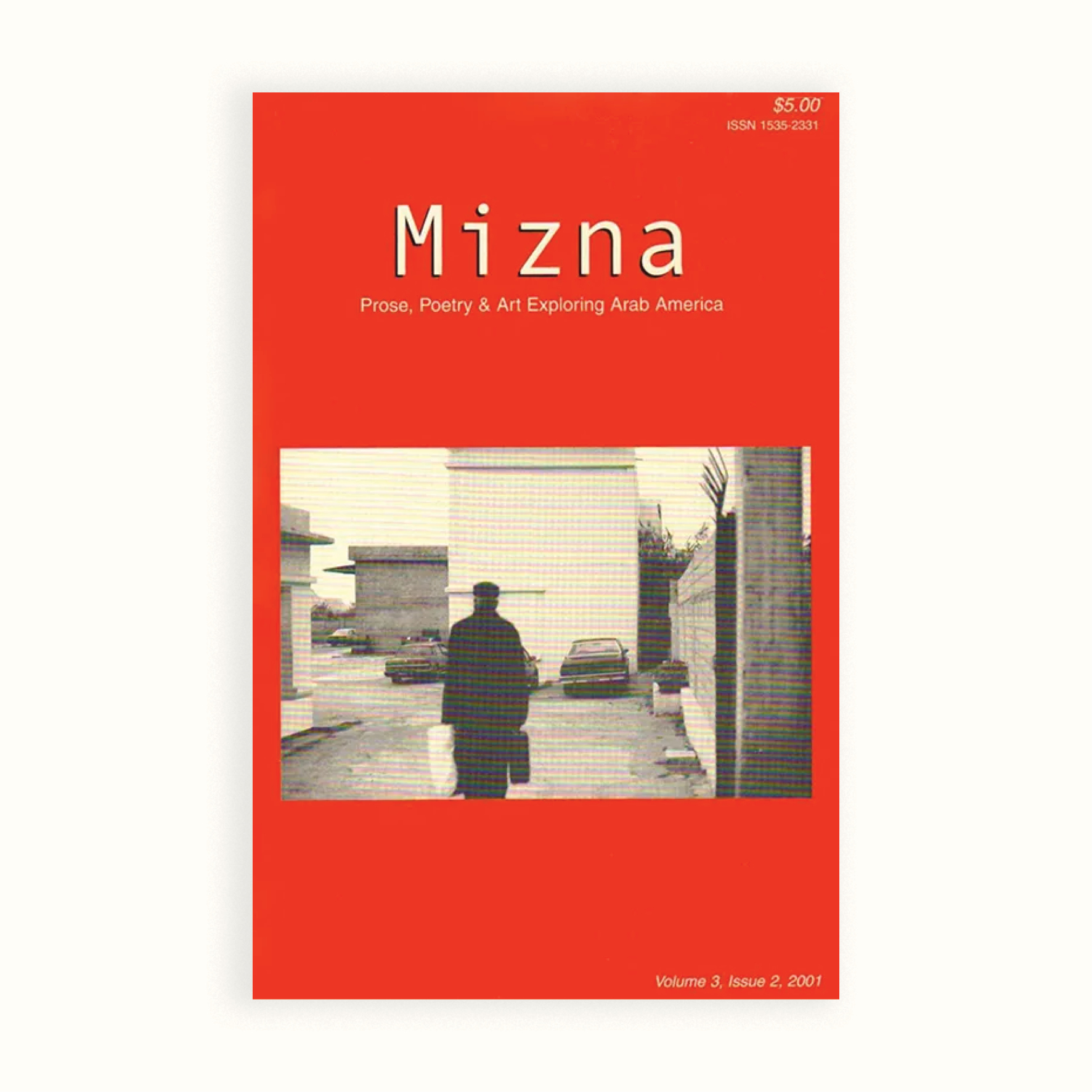Fall 2001 issue of Mizna with contributions from Susan Muaddi, D.H. Melhem, Pamela Nice, Chris Ellery, Eva Elias, Edith Dunn, Ibtisam Barakat, Sham-e-Ali al-Jamil, Rima Najjar Kapitan & Steven Salaita, Kazim Ali, Lubna Warawra, and Annemarie Jacir. Visual art by Lucien Samaha.